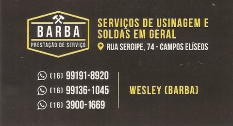 BARBA PRESTAÇÃO DE SERVIÇOS / Guia Ribeirão Preto SP SERVIÇOS DE USINAGEM E SOLDAS EM GERAL WESLEY (BARBA) Rua Sergipe, 74 Bairro Campos Elíseos Telefones Whatsapp: 16 – 99191-8920 16 – 99136-1045 16 – 3900-1669 Instagram = Clique Aqui Ribeirão Preto – SP