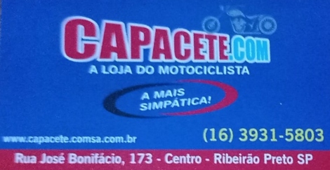 CAPACETE.COM / Guia Ribeirão Preto SP CAPACETE.COM A LOJA DO MOTOCICLISTA A Mais Simpática Rua José Bonifácio, 173 Centro Telefone 16 – 3931-5803 Whatsapp: 16-99294-0115 Facebook = Clique Aqui Ribeirão Preto – SP