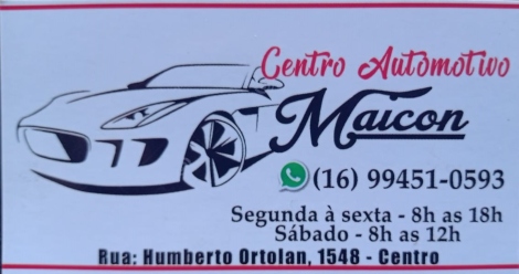 CENTRO AUTOMOTIVO MAICON / Guia Sertãozinho SP CENTRO AUTOMOTIVO MAICON Rua Humberto Ortolan, 1548 – Centro Telefone Whatsapp 16 – 99451-0593 Sertãozinho – SP