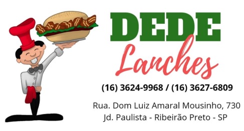 Dedé Lanches | Guia Ribeirão Preto SP DEDÉ LANCHES Rua Dom Luiz Amaral Mousinho, 730 | Jardim Paulista Disk Lanches = É Só Ligar: Telefones 16 3624-9968 e 16 3627-6809 Whatsapp 16 98802-0574 Facebook = Clique Aqui Instagram = Clique Aqui Ribeirão Preto – SP