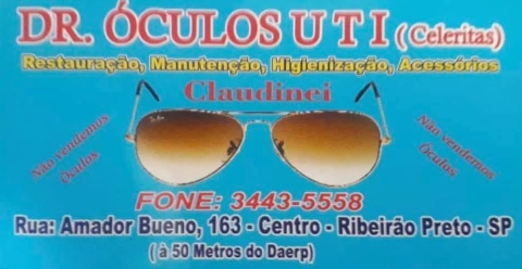 Dr. ÓCULOS UTI / Guia Ribeirão Preto SP DR. ÓCULOS UTI RESTAURAÇÃO | MANUTENÇÃO HIGIENIZAÇÃO | ACESSÓRIOS Rua Amador Bueno, 163 Centro Telefone 16 – 3443-5558 Facebook = Clique Aqui Ribeirão Preto – SP