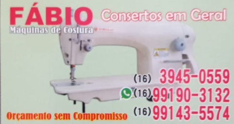 FÁBIO MÁQUINAS DE COSTURA Consertos em Geral / Guia Sertãozinho SP FÁBIO MAQUINAS DE COSTURA Consertos em Geral Orçamento Sem Compromisso Telefones 16 – 3945-0559 / 16 – 99143-5574 e Whatsapp 16 – 99190-3132 Rua Dr. Antonio Furlan Júnior, 1192 – Centro Sertãozinho – SP
