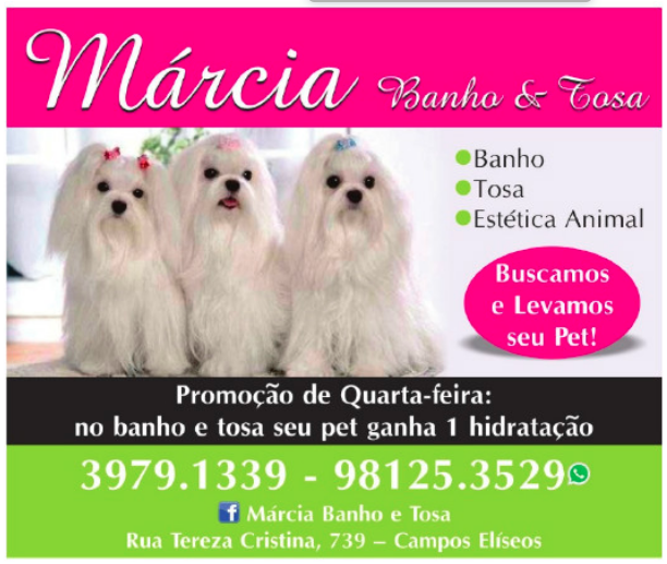Márcia Banho e Tosa | Guia Ribeirão Preto SP MÁRCIA BANHO E TOSA Rua Tereza Cristina nº 739 = Bairro Campos Elíseos Telefones: 16 – 3979-1339 Whatsapp (16) 98125-3529 Facebook = Clique Aqui Ribeirão Preto – SP