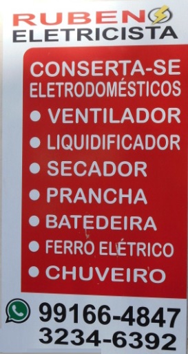 RUBENS ELETRICISTA / Guia Ribeirão Preto SP RUBENS ELETRICISTA Rua Silveira Martins, 982 Bairro Campos Elíseos Telefones 16 – 3234-6392 e Whatsapp 16 – 99166-4847 Facebook = Clique Aqui Ribeirão Preto – SP